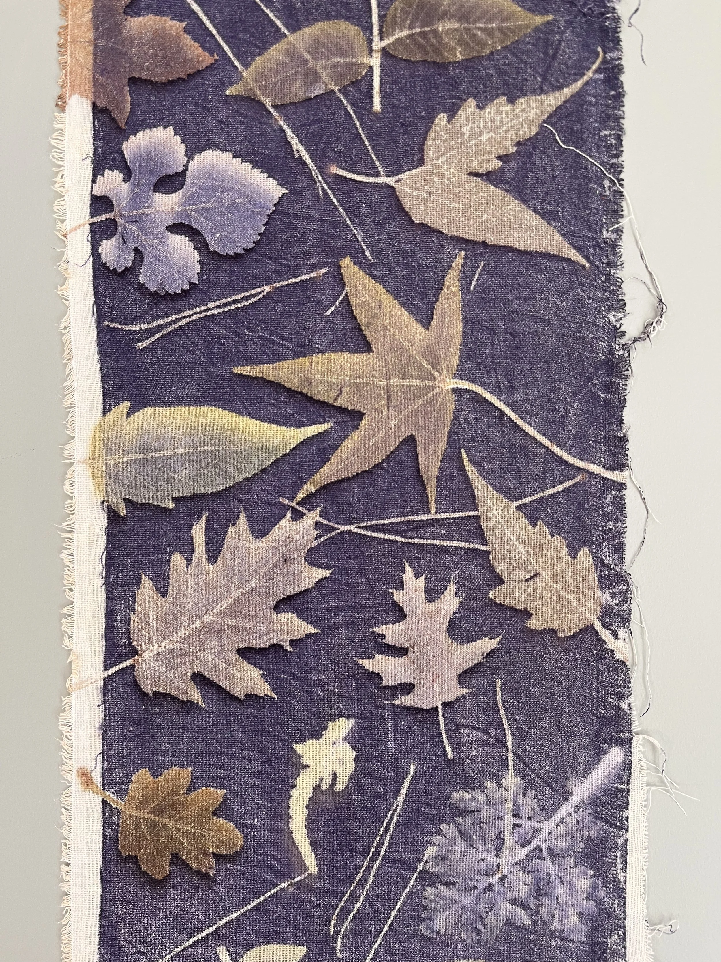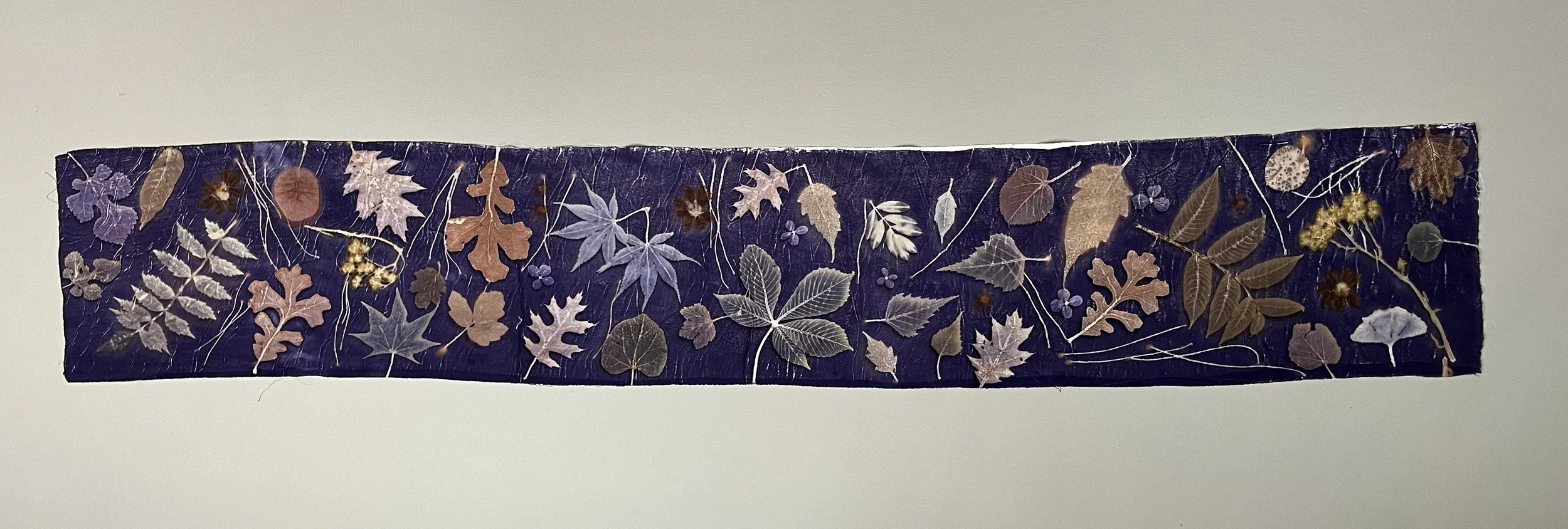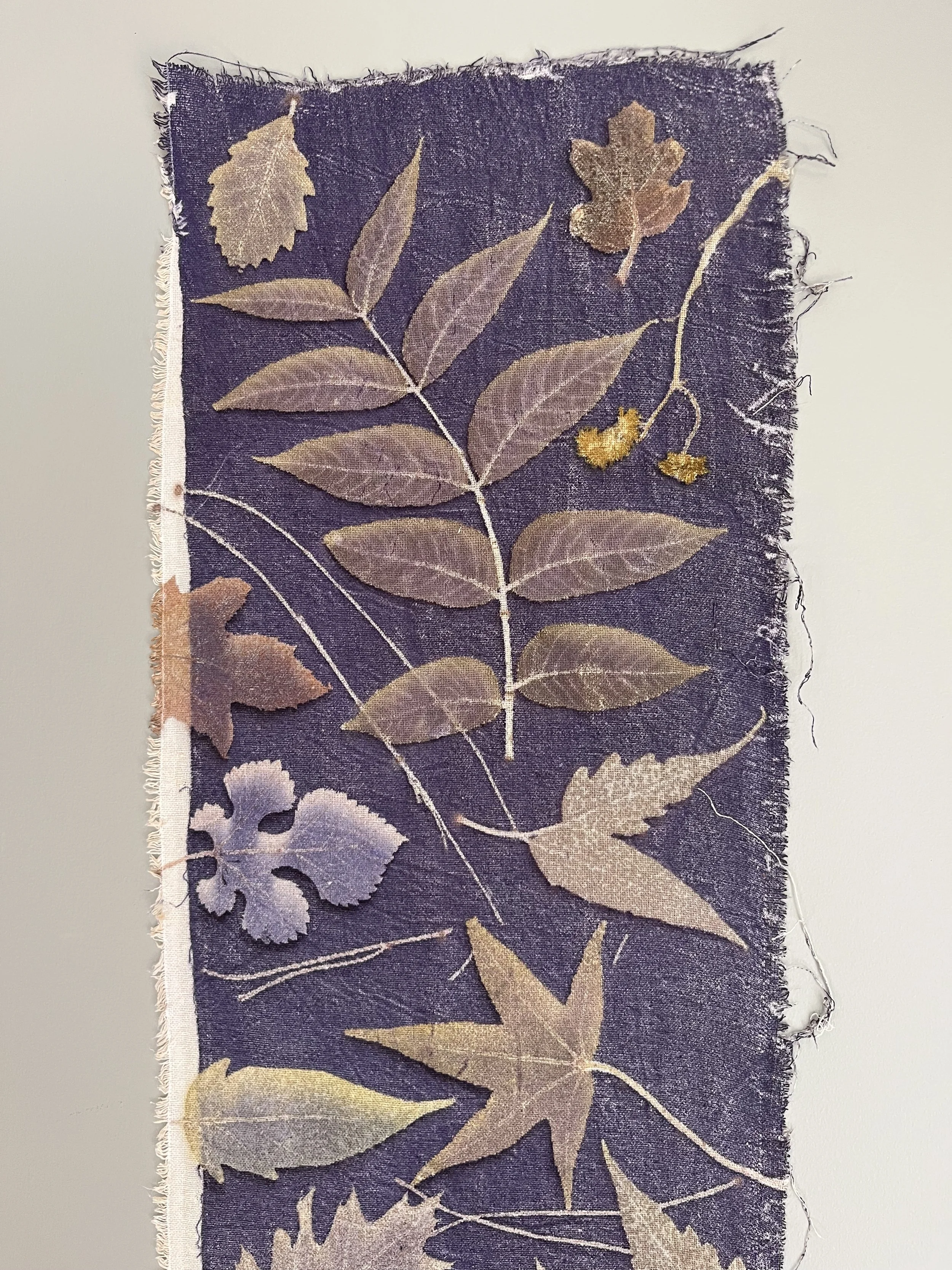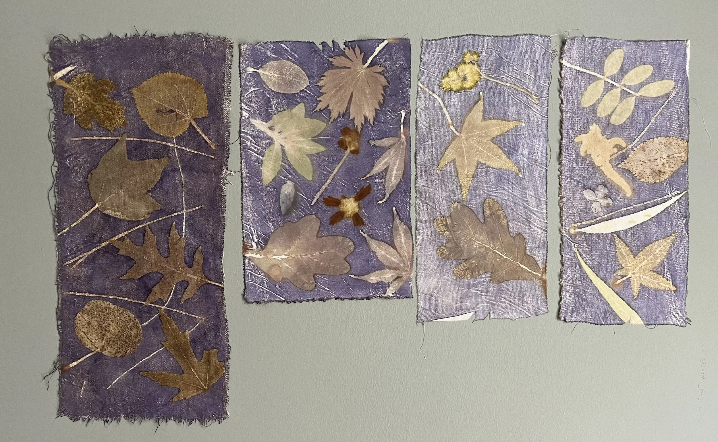 Mulberry, oak, marcela, hydrangea leaves and flowers, sweet gum, sumac, black walnut, ginkgo, birch, Japanese maple, casuarina, linden, smoke bush, horse chestnut, coreopsis, ferns, grape, ricinus, silver maple.